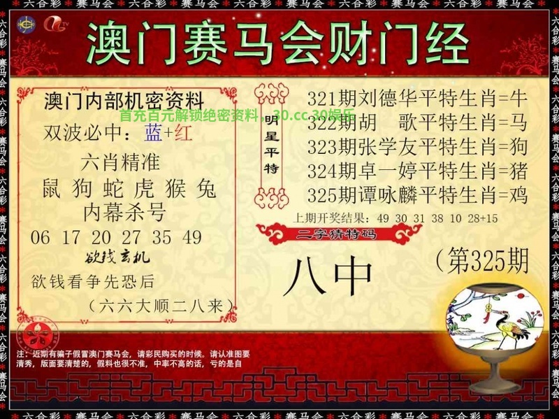 328期:曾道人网 【平特一尾】 已公开